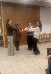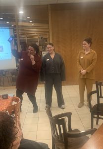 De laatste groep maakt een ‘levende foto’. Lachend vormen ze een kring, met hun vuisten naar elkaar, roepend: “Samen staan we sterk!” Het laat mooi zien dat zij hebben ervaren hoe het bundelen van expertise bijdraagt aan de kwaliteit van zorg. “En die verbinding willen we in de toekomst zeker blijven zoeken hoor”, voegt één van de deelnemers nog toe.