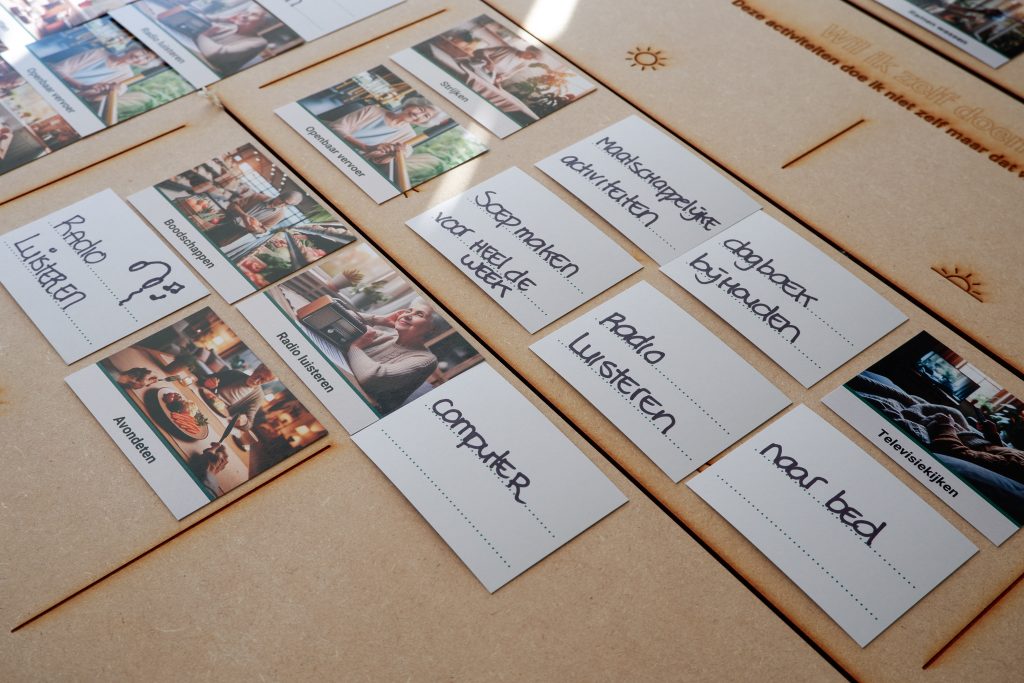 We zijn bij mantelzorgers en mensen met dementie thuis op de koffie geweest. Om te zien hoe zij hun leven inrichten, waar ze tegenaan lopen en wat hun wensen zijn. Het werden intieme ontmoetingen met ruimte voor hun levensverhalen. We kregen een inkijkje in hun levens en de bezoeken brachten ons veel meer dan alleen onderzoeksinzichten. De relatie met de mensen met dementie en mantelzorgers heeft altijd boven de uitkomsten van het onderzoek gestaan.